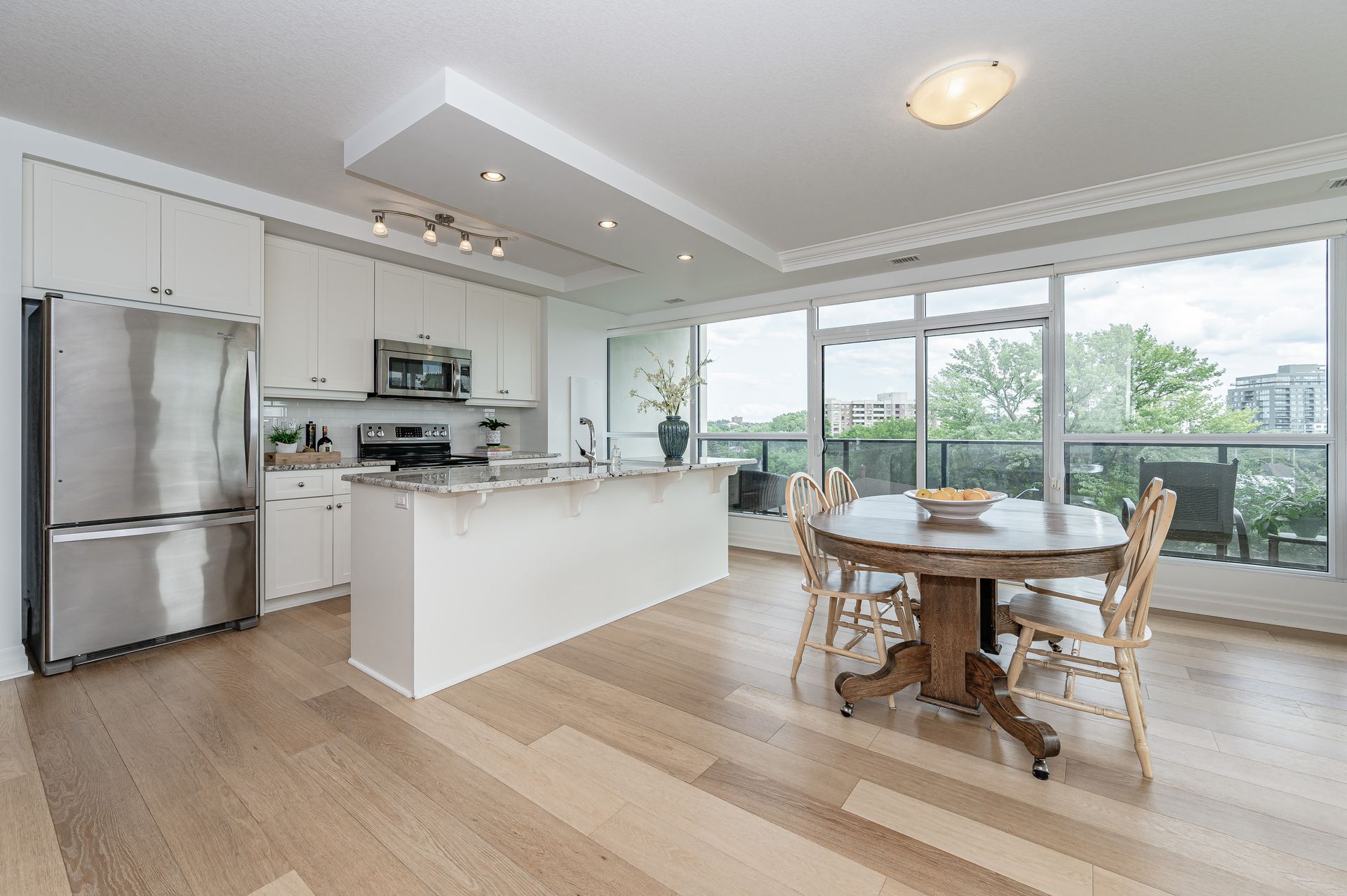 Introducing an exquisitely designed corner suite in the heart of downtown Guelph! This remarkable residence combines an ideal location with breathtaking panoramic views, offering a dream-like experience for urban enthusiasts. Picture yourself savoring your morning coffee on one of the two balconies, relishing the sunrise, or unwinding in the evening while witnessing the sun gracefully setting on the horizon. The proximity to a multitude of amenities such as restaurants, cinemas, shops, and scenic trails along the Speed River grants unparalleled convenience. Additionally, the building's advantageous position ensures easy access to Guelph transit and the Go train to Toronto, featuring multiple return trips daily—an exceptional perk for those seeking to explore beyond the city limits. Step inside this unit to discover Tricar's finest craftsmanship. The spacious layout encompasses two bedrooms, two bathrooms, and a den, adorned with beautiful hardwood floors throughout and elegant granite countertops. If you have been searching for a two-bedroom condominium, this is unquestionably the unit that perfectly meets your desires.