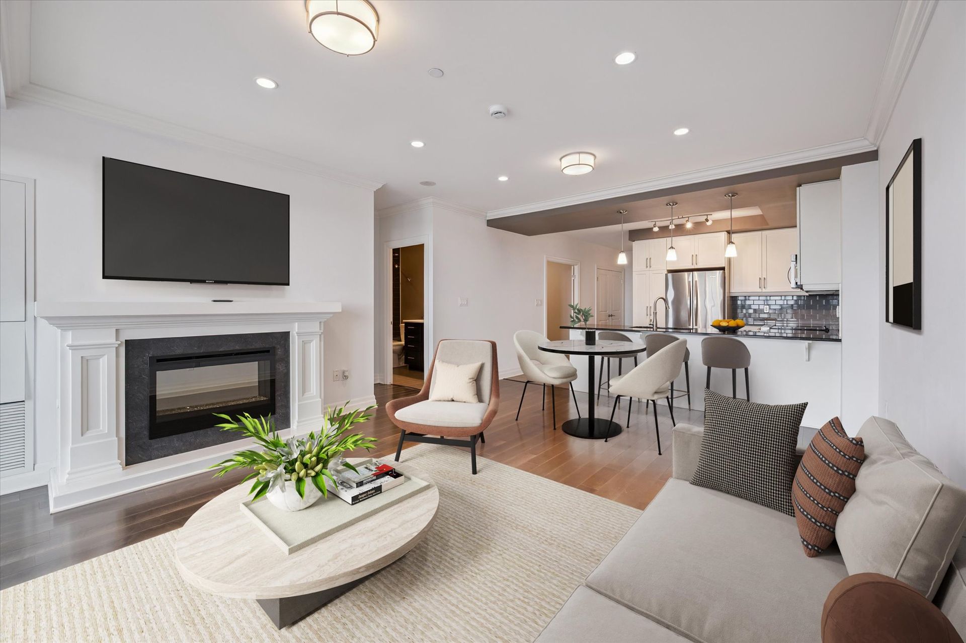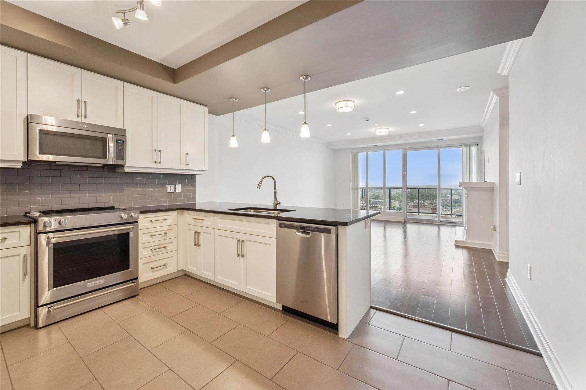 Step inside and hang your coat in the entryway closet before making your way into the heart of the home. To your left, a sophisticated open-concept kitchen awaits, featuring sleek white cabinetry, smart grey tile flooring, black granite countertops, and stainless steel appliances. The elegant dining and living area offers a cozy fireplace and walk-out access to a spacious, private balcony perfect for soaking in stunning urban views and unforgettable sunsets. Enjoy engineered hardwood throughout, with tile only in the entry and kitchen. The suite features one bedroom with a walk-in closet, plus a versatile second room ideal for a home office, media room, or guest space. The four-piece bathroom offers a comfortable shower-bathtub combo and generous storage. A dedicated laundry room, neatly tucked away, adds convenience without clutter. The building's amenities are exceptional. The River Club, a 12,000 sq. ft. social and recreational facility, includes a fully equipped gym, a peaceful library, and a lounge with a bar, billiards, and card tables. There's also a guest suite available for overnight visitors and a kitchen and lounge that can be reserved for special occasions. In warmer months, the 4th-floor terrace is a true highlight, with raised gardens, gazebos, BBQs, and ample seating. Suite 1408 includes a spacious locker located on the 15th floor and one very convenient parking spot, complete with an EV charger right near the garage entrance and close to the elevator. Location is everything, and this one delivers. Just steps from the Quebec Street Mall side entrance, shops, pubs, restaurants, the Farmers Market, and cultural attractions like the Sleeman Centre and River Run Centre. You're also directly across from the Downtown Trail, ideal for biking, walking, or jogging along the Speed River and just a short walk to the GO Station and Transit Hub. Urban living at its finest, convenient, connected, and effortlessly comfortable.