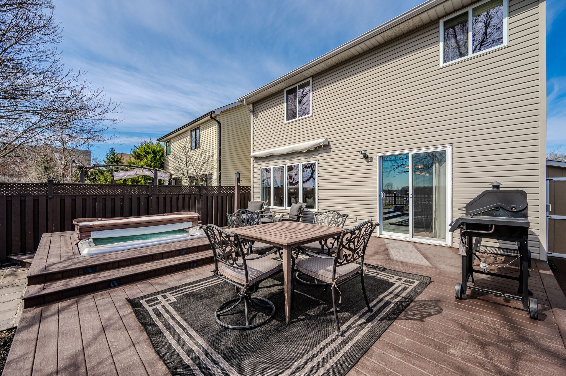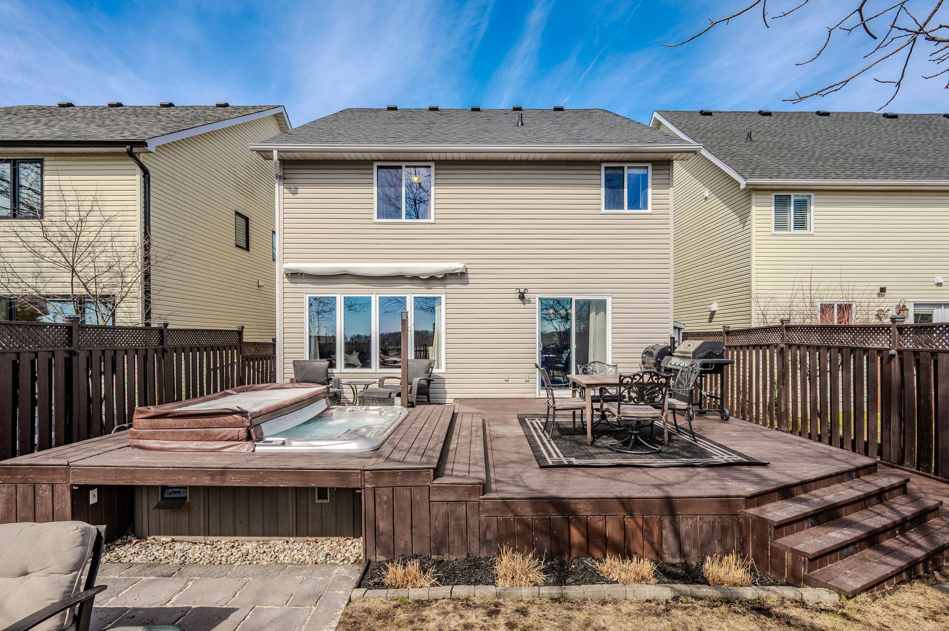 Peaceful views, total privacy, and a functional family layout—this 4-bedroom home offers the kind of setting that’s hard to come by. Tucked on a quiet street and backing onto expansive farm fields, the backyard feels like your own private retreat. Start the day with coffee on the deck, unwind in the built-in hot tub, or gather around the fire pit with nothing but open sky behind you. No rear neighbours, no noise—just space to relax and breathe. Inside, the open-concept main floor is designed for connection and comfort. Large windows bring in natural light, while the kitchen, dining, and living areas flow effortlessly for easy family living and entertaining. Upstairs, four spacious bedrooms—including a bright primary suite with a 4-piece ensuite—offer room for everyone. A dedicated second-floor laundry room adds everyday convenience, and the unspoiled basement (with rough-in for a 3-piece bath) is ready for whatever comes next. Located in the sought-after community of Rockwood, you’re close to scenic trails, the Eramosa River, and Rockwood Conservation Area—with easy access to Guelph, Milton, and Acton. If you’re looking for peace, privacy, and room to grow, this home checks all the boxes.